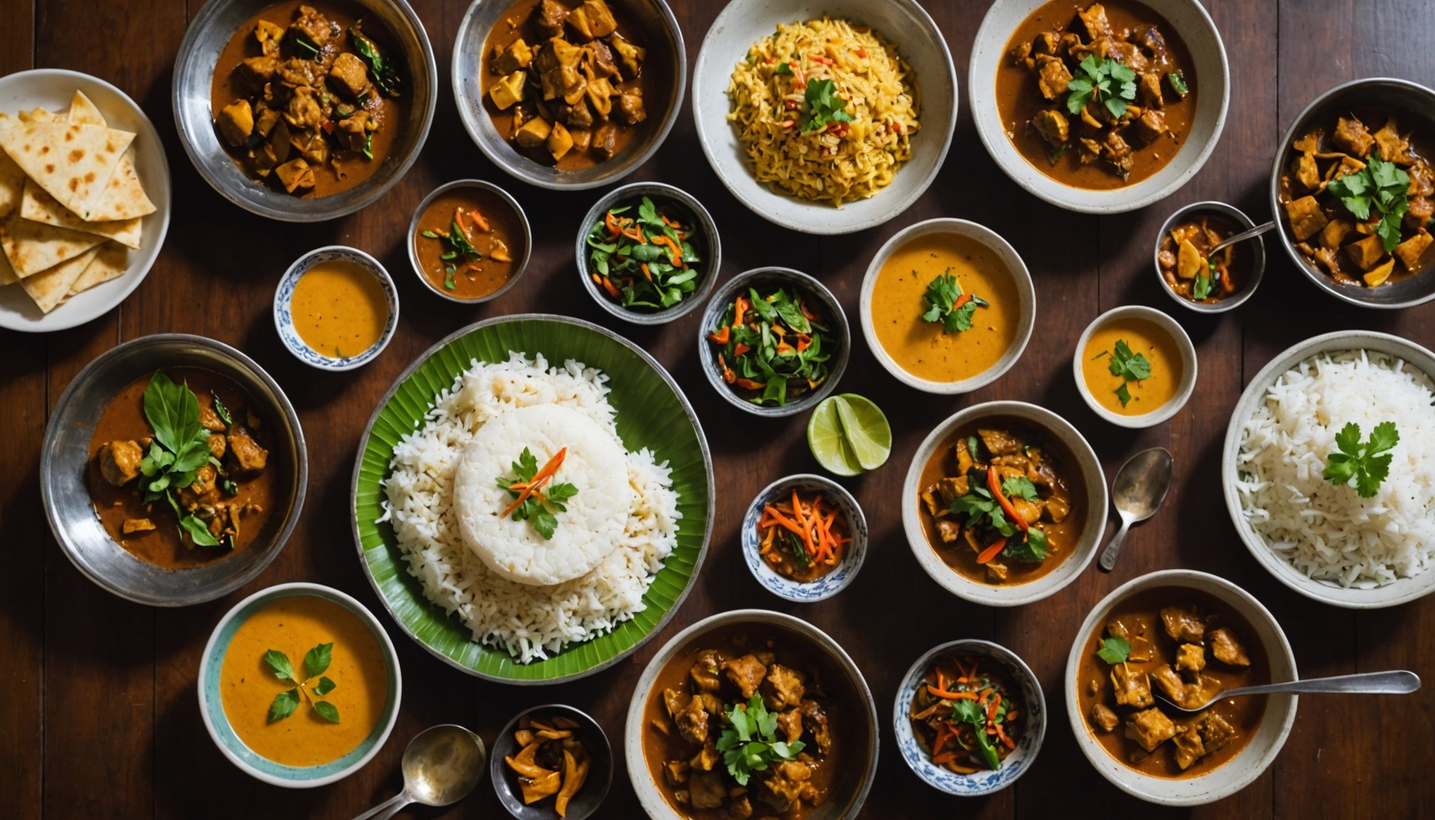 Les ingrédients et saveurs incontournables des recettes traditionnelles tournent autour de produits frais tels que la noix de coco, omniprésente sous forme râpée, en lait ou en huile, ainsi que des épices comme la cannelle, la cardamome et le clou de girofle. Cette palette aromatique se marie à la perfection avec des herbes fraîches comme la coriandre, soulignant la complexité subtile et la richesse gustative de chaque plat.